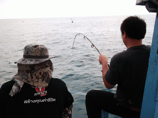 ครอบทีแรกได้หมึก 2 ตัว... สาเหตุ น้ำมันเป็นพราย เวลาทิ้งอวน มันเป็นพรายน้ำหมึกมันเห็นก่อน ออกหมดเลย