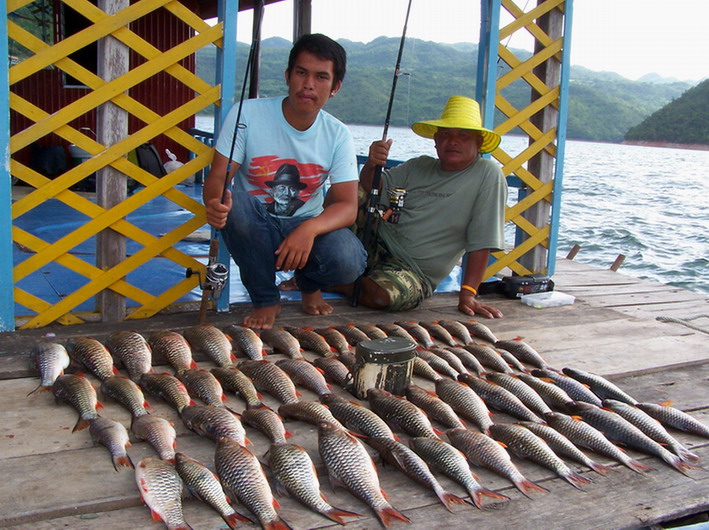 ภาพที่ 1ลุงสนองกับเจ้าเอ จอมพรานปลาตัวจริงของหม่องกระแทะเพิ่งได้มาเหมือนกันครับ กำลังจะไปสอยเพิ่มอีก เพราะฝนเริ่มตกหนัก น้ำจะเต็มเขื่อนปลากระสูบจะไม่กินครับ